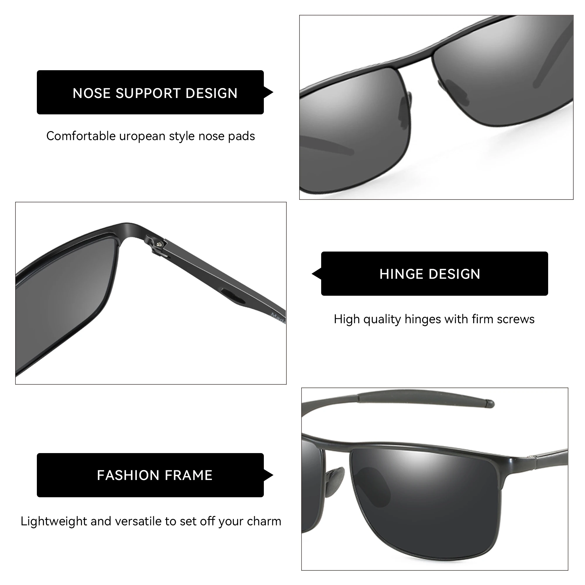 עיצוב Square Unisex: צורה רב-תכליתית שמחמיאה כמעט לכל מבנה פנים ומתאימה לגברים ונשים כאחד.
