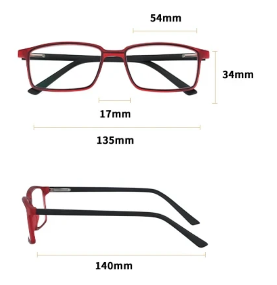 משקפי ראייה מלבניים אופנתיים קלי משקל ועמידים יוניסקס