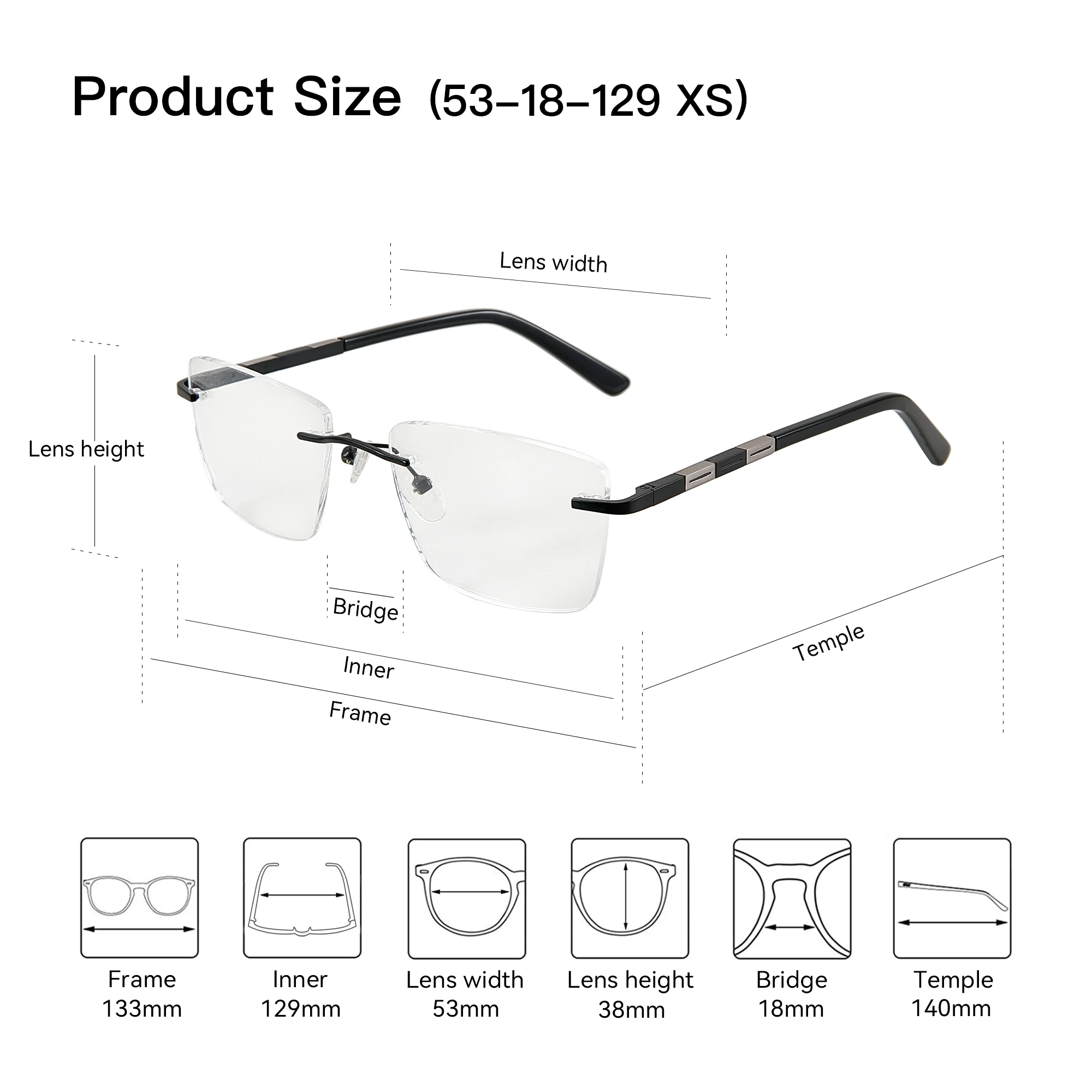 • חומר מסגרת: High-Quality Rimless Alloy Metal.