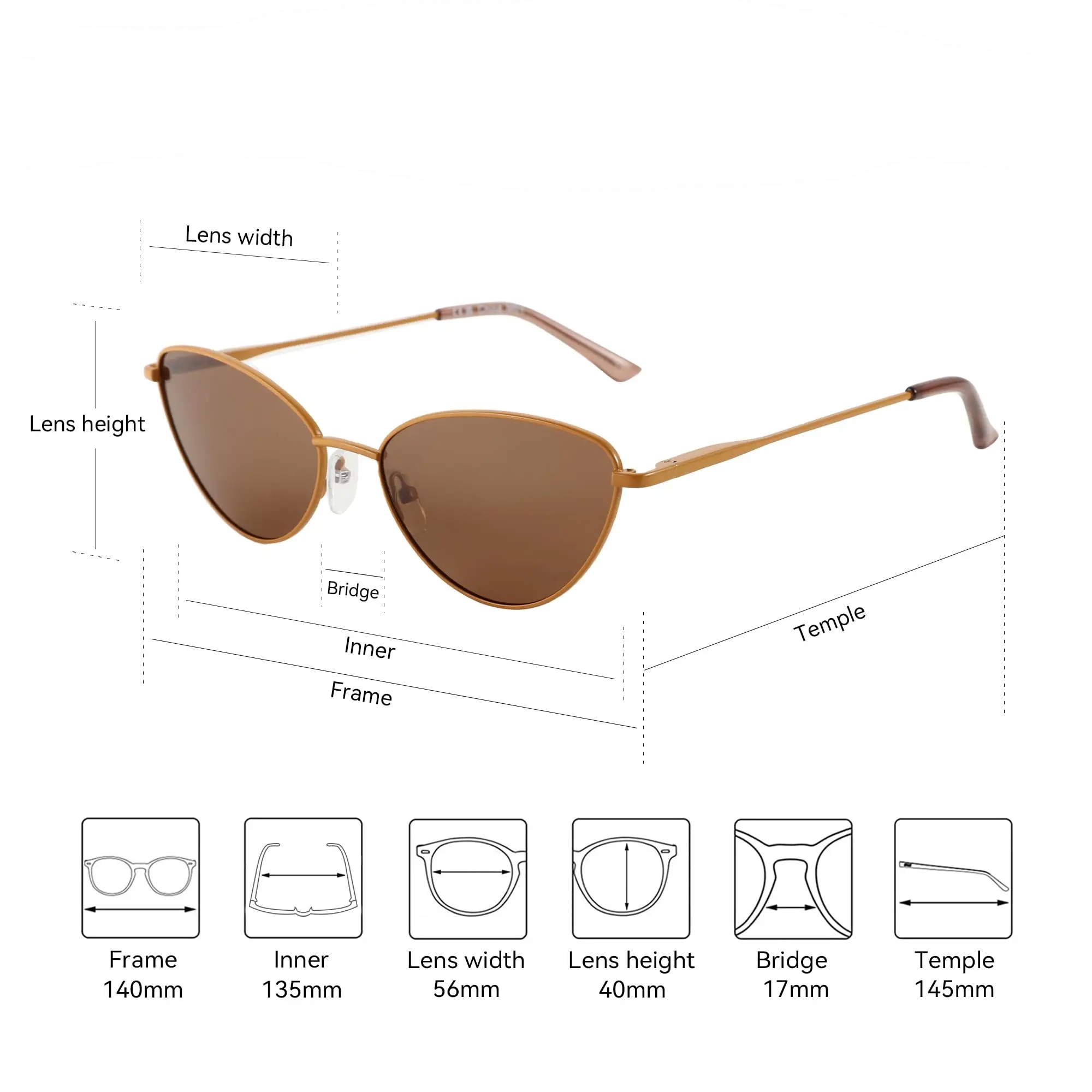 VISU Narrow Cat Eye – הסטייל הקומפקטי שכבש את המסלולים דגם ה-Small Cat Eye של VISU מוכיח שדברים טובים מגיעים באריזות קטנות. עם מסגרת מתכת (Alloy) דקה ויוקרתית, המשקפיים האלו מעניקים מראה "חתולי" מעודן וצר, שמתאים בדיוק למי שמחפשת אביזר אופנה עם נוכחות חזקה אך אלגנטית.