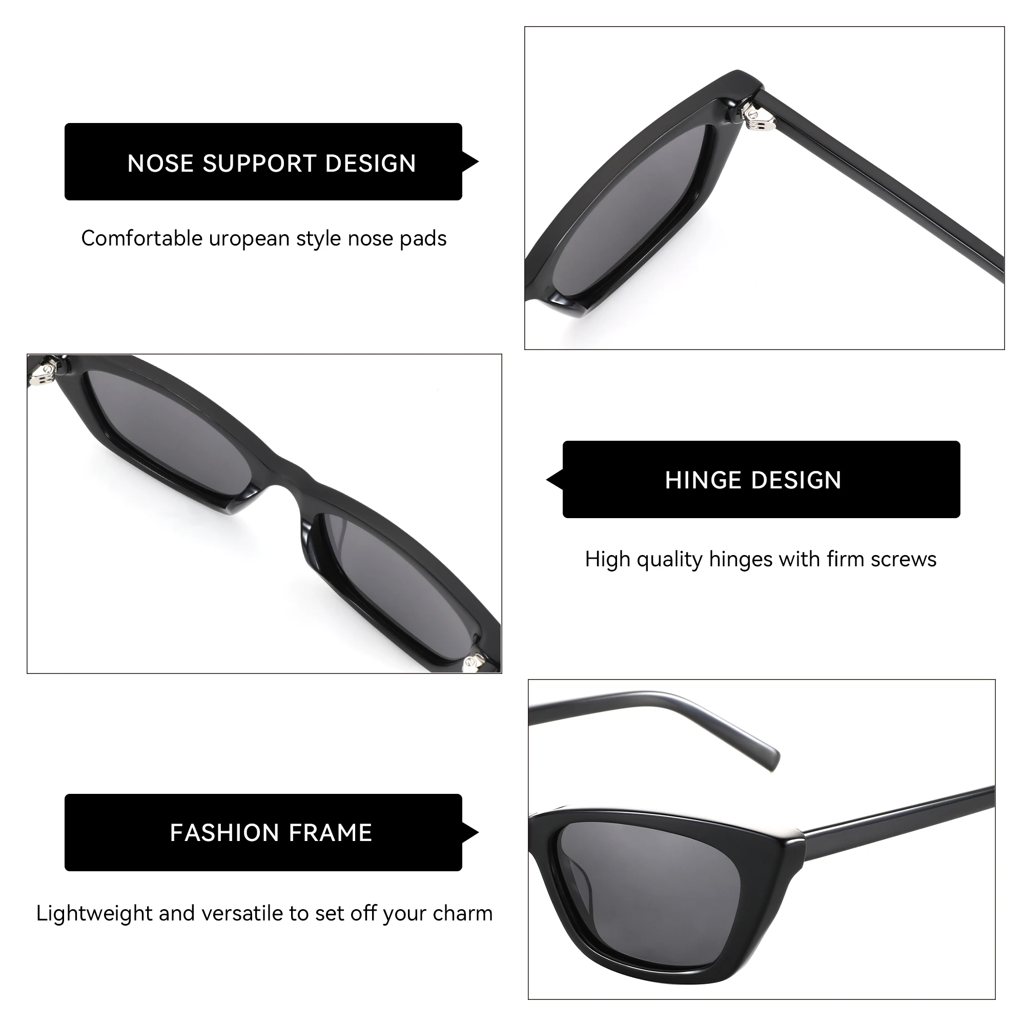 עיצוב Small Cat Eye מחטב: המבנה הצר והזוויתי מעניק אפקט של "ליפטינג" לתווי הפנים ומתאים לכל גיל ולכל סגנון לבוש.