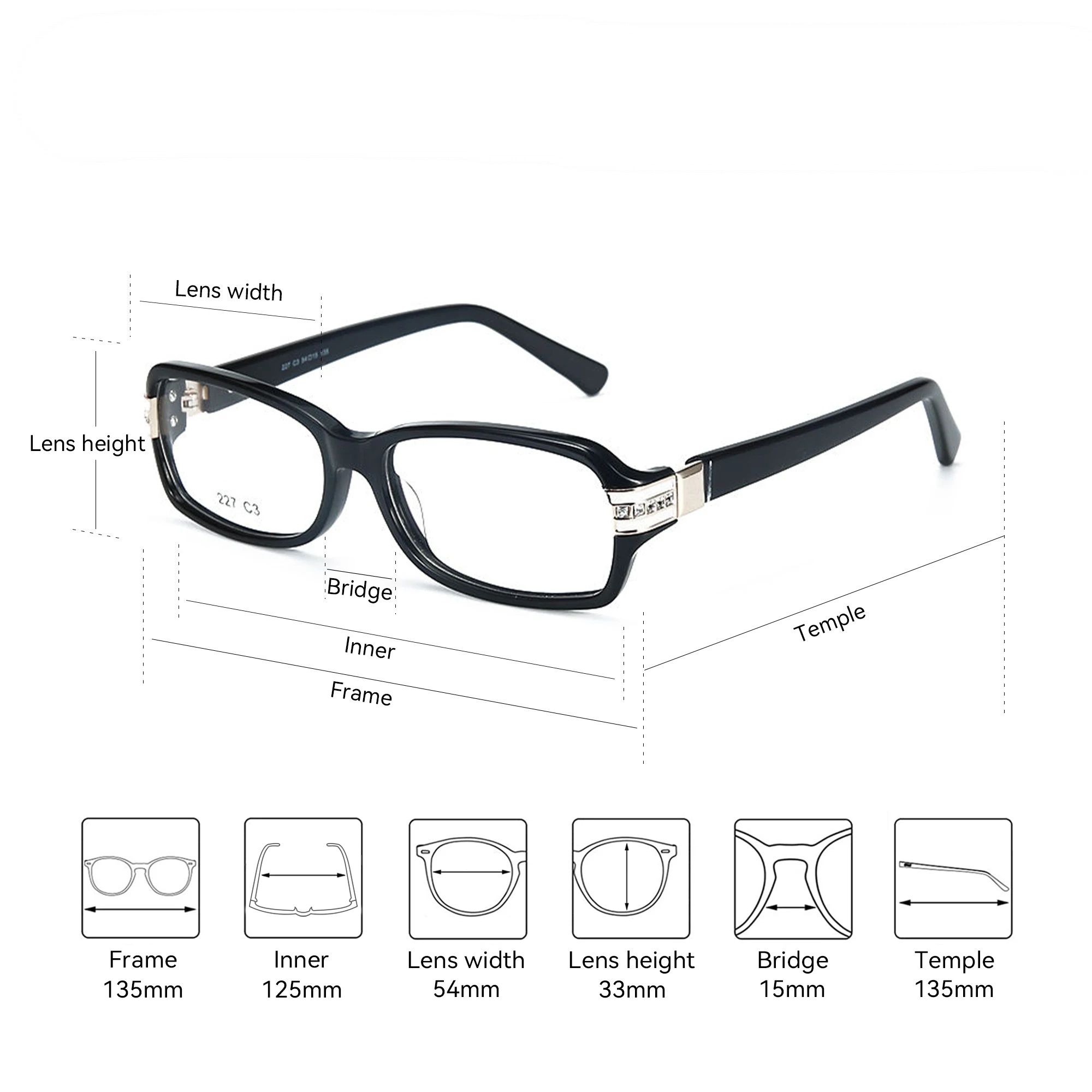 מדוד/מדדי את רוחב המשקפיים הישנות מקצה לקצה כדי לוודא התאמה למידות המופיעות בתמונה-הפרש של 2 או 3 סמ מתקבל.